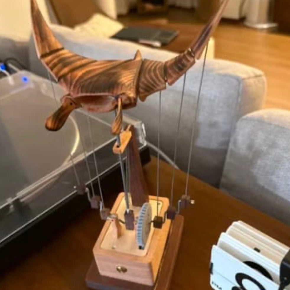 Bring the ocean’s silent ballet to your space. Our walnut manta ray, powered by interlocking gears, glides with every turn of the crank—transforming stress into a calm, flowing rhythm.